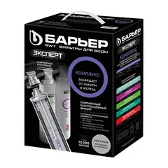 Барьер Expert Смягчение БИО - комплексная трехступенчатая система эффективно очищает жесткую воду от органических и неорганических примесей, умягчает ее и обеспечивает 100% защиту от бактерий при сохранении минерального состава воды. Фильтр оснащен быстросъемными картриджами,...