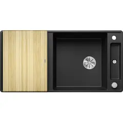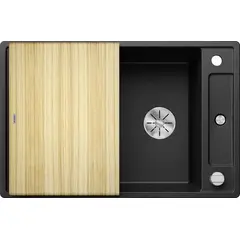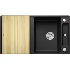 Простые линии и ультратонкий плоский кант  Скользящая деревянная разделочная доска позволяют сбрасывать нарезанные продукты непосредственно в посуду  Мойка Blanco AXIA III 6 S-R, 525851 смотрится элегантно и выглядит как единое целое и имеет первостепенное значение Раковина Blanco silgranit идеально подходят как для мытья посуды так и для приготовления пищи Коландер можно расположить в основной чаше для легкого приготовления пищи  Высококачественный перелив C-overflow® и отводная арматура InFino® элегантно интегрированы и очень просты в уходе