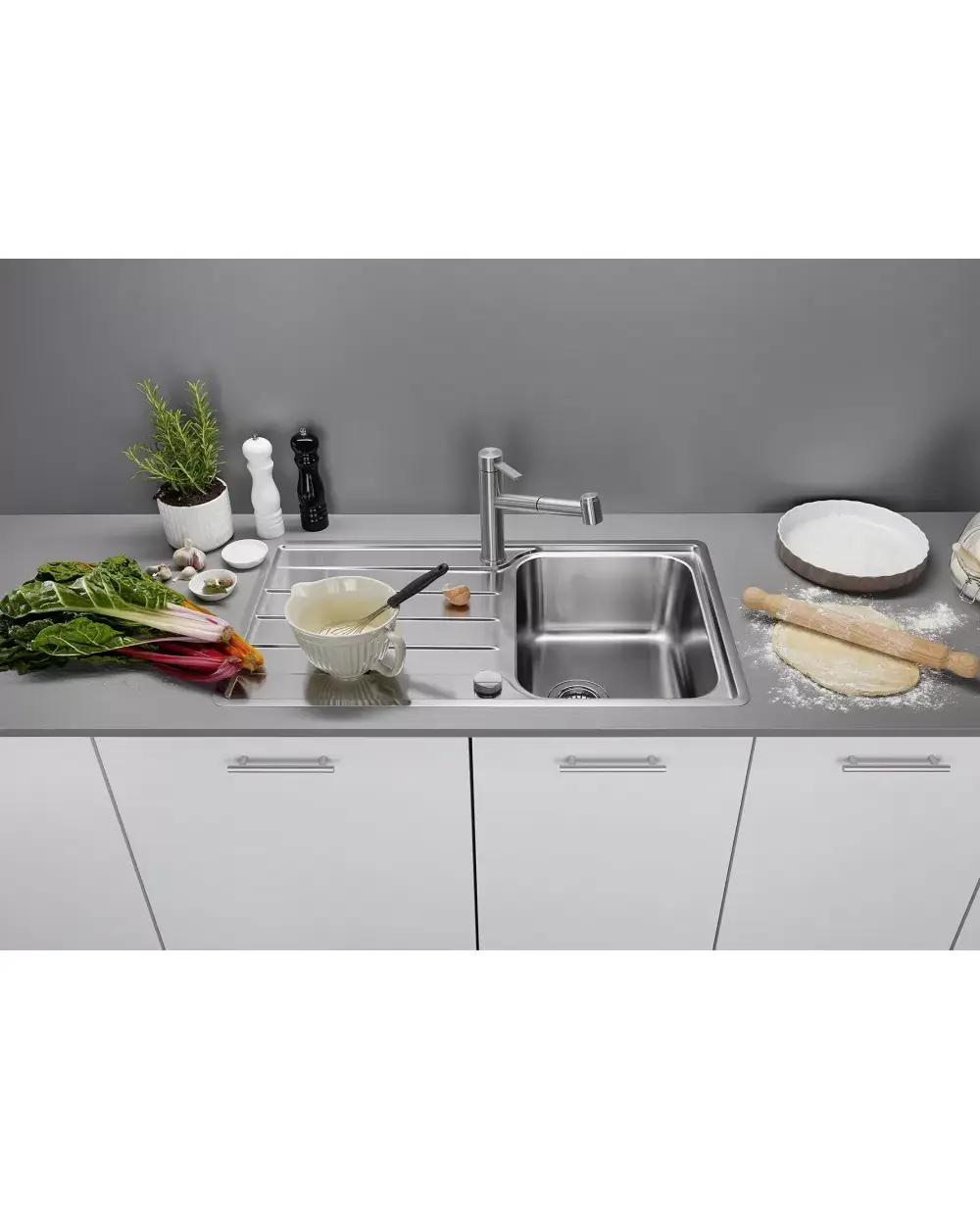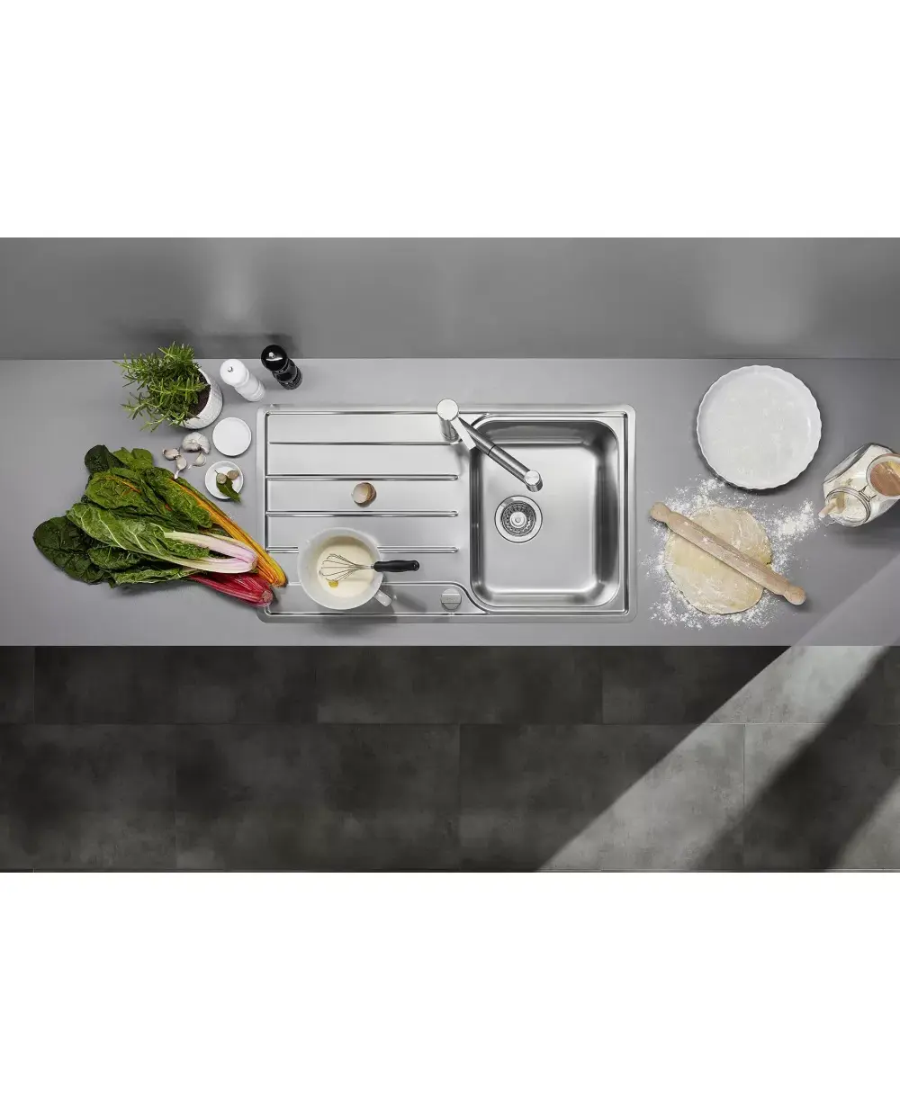 • • Широкая полка для смесителя и просторная зона сушки