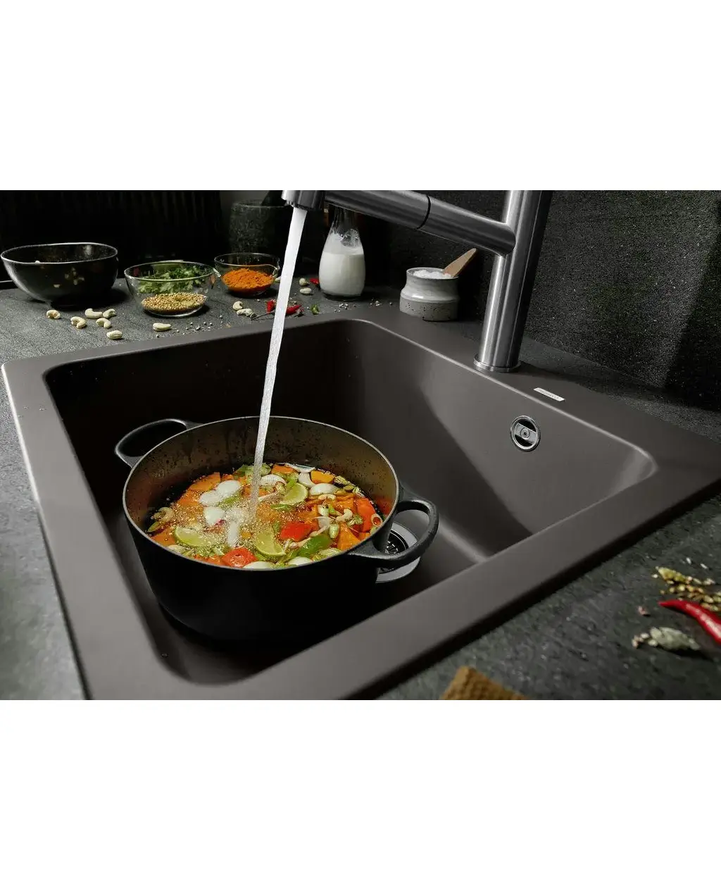 • • Вместительная мойка универсальной формы