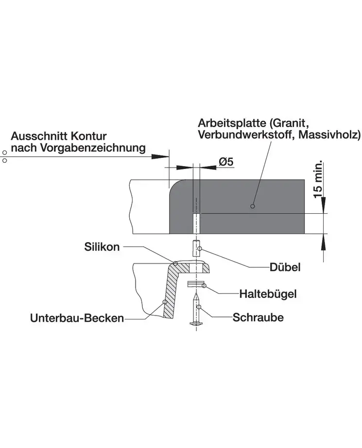 • • Простой монтаж под столешницу