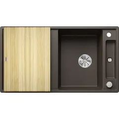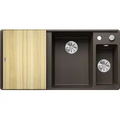Простые линии и ультратонкий плоский кант  Скользящая деревянная разделочная доска позволяют сбрасывать нарезанные продукты непосредственно в посуду  Мойка Blanco AXIA III 6 S-R, 525851 смотрится элегантно и выглядит как единое целое и имеет первостепенное значение Раковина Blanco silgranit идеально подходят как для мытья посуды так и для приготовления пищи Коландер можно расположить в основной чаше для легкого приготовления пищи  Высококачественный перелив C-overflow® и отводная арматура InFino® элегантно интегрированы и очень просты в уходе