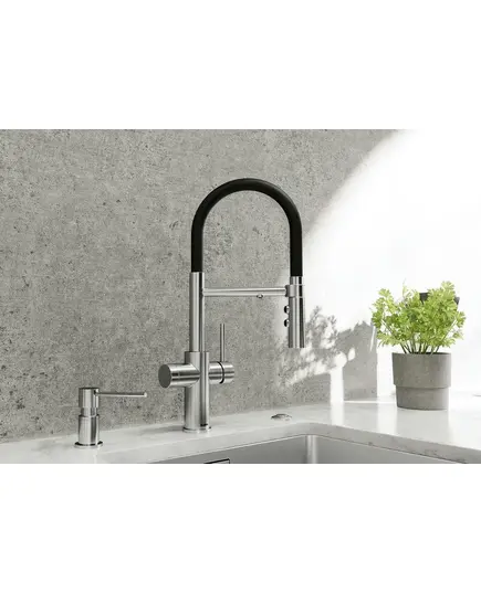• • 3-в-1 смеситель в полупрофессиональном дизайне: для холодной, горячей и фильтрованной воды