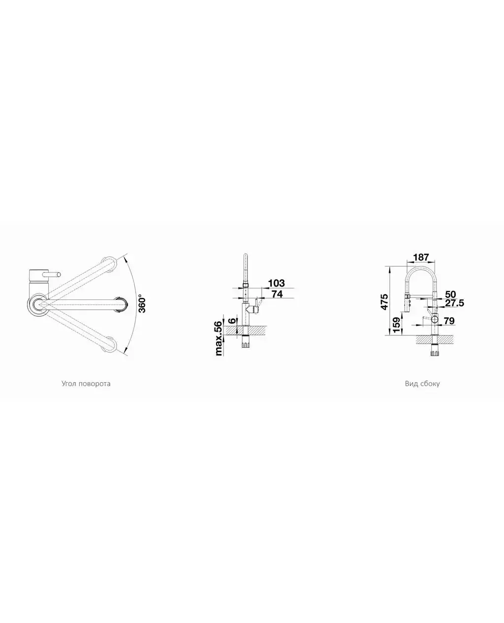 • • Благодаря небольшой высоте смеситель можно разместить под навесными шкафами