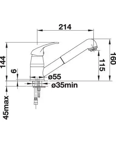 Требуется отверстие под смеситель Ø 35 мм